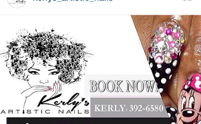 You can check out her Instagram here https://instagram.com/kerlys_artistic_nails/. She"s also on Facebook and you can check out her page and tell me if i'm lying, Cuz she is amazing and remarkably affordable. I cant wait to see what she's going to create during my next appointment.